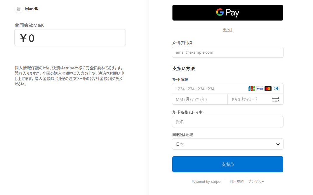 すべてStripe社の安全なシステム上で処理しています。